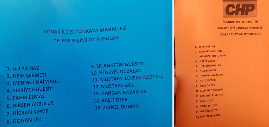 Çankaya Mahallesi'ndeki çift listeli yarışta sandığa mavi ve turuncu listelerle gidildi.