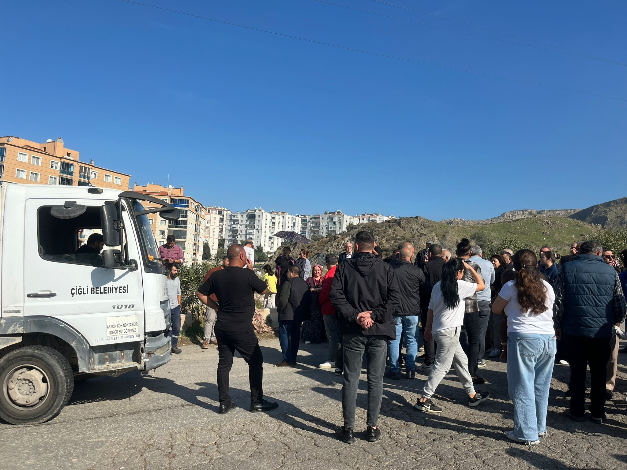 Bu esnada Çiğli Belediyesi'ne ait araçların geri manevra yaptığı ve bölgeden çekildiği görüldü.