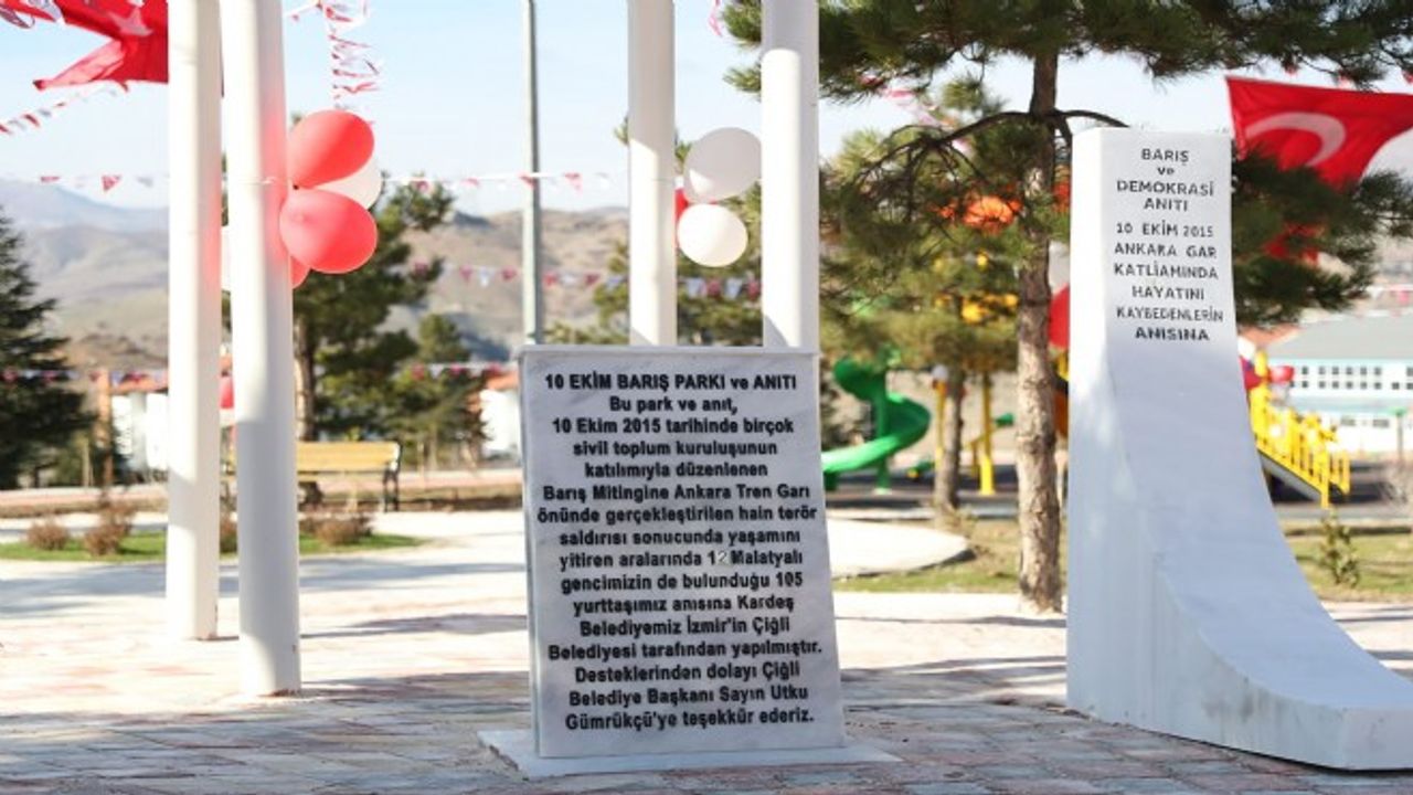 Açılış töreninde konuşan Cumhuriyet Halk Partisi Malatya Milletvekili ve Genel Başkan Yardımcıları Veli Ağbaba, 'Gösterdikleri duyarlılıktan ötürü İzmir'imizin genç, partisine ve gençlerine bağlı Çiğli Belediye Başkanımız ile Kartal Belediye Başkanımız başta olmak üzere Çiğli İlçe Başkanımız Mert Özcan, Hüseyin Çetin ve İbrahim İncesu'ya teşekkür ediyorum. Bu parkı intikam duygusuyla değil yaşadığımız acıyı unutmamak için yaptık. 6 yıl önce Ankara'nın göbeğinde barış isteyen 104 insanımızı kaybettiğimiz büyük bir barbarlıkla karşılaştık. Bu saldırı, ülkemizin yaşadığı en büyük acı ve ayıplardan bir tanesi. Birilerinin siyasi geleceğini garanti altına almak için gerçekleşen bu katliamları ve acıları unutmayacağız. Bizim amacımız ülkeye; barışı ve kardeşliği getirmek. Siyasi kimliği, etnik yapısı ne olursa olsun bu toprağın hamurunda kardeşlik var o nedenle de bunu iktidara geldiğimizde başaracağız. Hekimhan'da dilin, dinin, etnik yapının, önemi yok. Tek değere bağlıdır Hekimhan, o da Atatürk ve burası ayrımcılığı bilmeyen bir ilçe. Umarım bu birliktelik tüm Türkiye'ye örnek olur. Biz parti tarihimizin en büyük katliamını yaşadık, ailelerimiz de büyük acı çekti ve çekmeye devam ediyor. Kardeşlerimizin amaçladığı barış ve sevgi, onların adı ile Hekimhan'da yaşayacak' sözleri ile konuşmasını sonlandırdı.