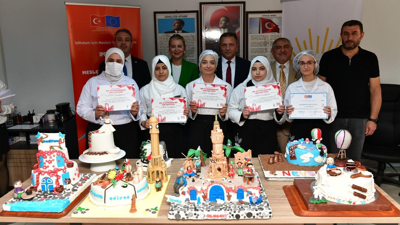 İstihdam garantili pastacılık kurslarında eğitim alan 40 kursiyer sertifikalarını aldı ve 24’ü işe yerleşirken, 2’si de kendi işletmesini kurma yolunda ilerliyor.