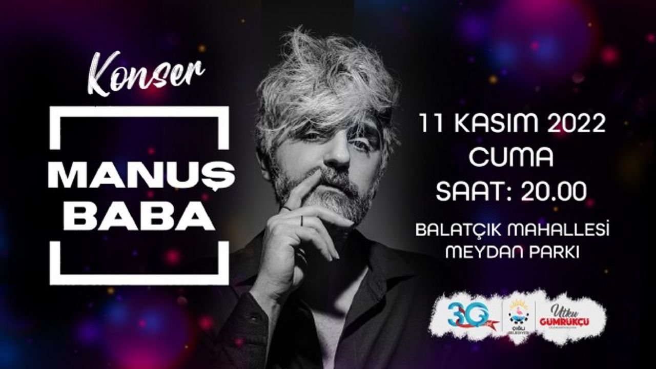 Düzenlediği kültür sanat etkinlikleriyle adından sıkça söz ettiren Çiğli Belediyesi, 11 Kasım Cuma günü Türk Müziğinin beğeniyle dinlenen ismi Manuş Baba'nın sahne alacağı konsere ev sahipliği yapacak. Balatçık Mahallesi'nde gerçekleştirilecek konser saat 20:00'de başlayacak ve ücretsiz olacak. Serhan Asker'in sunuculuğunu yaptığı Görkemli Hatıralar programının bu haftaki bölümü ise 12 Kasım Cumartesi günü Çiğli Belediyesi Astronomi Havacılık ve Uzay Kampüsünde gerçekleştirilecek. Çiğli Belediye Başkanı Utku Gümrükçü ile halk müziğinin sevilen ismi Selçuk Balcı'nın konuk olacağı program saat 10:00'da başlayacak ve Halk TV'den canlı yayınlanacak.
