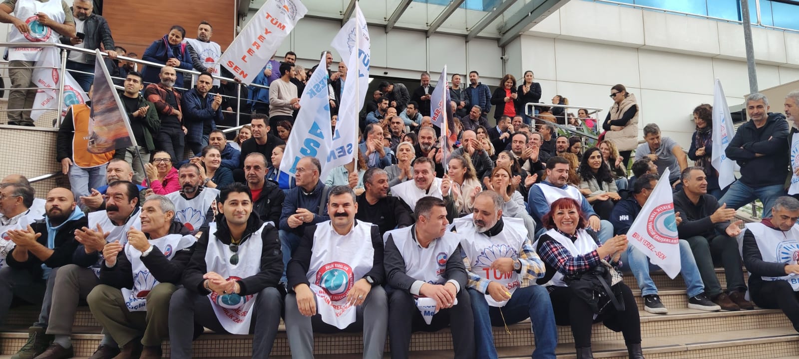 Birlik Yerel-Sen, belediyenin Sosyal Denge Tazminatı (SDT) ödemelerini durdurmasına tepki göstererek, “Onurumuzu ve ekmeğimizi savunmak için buradayız. Hakkımız olanı gasp ettirmeyeceğiz” açıklamasında bulundu.