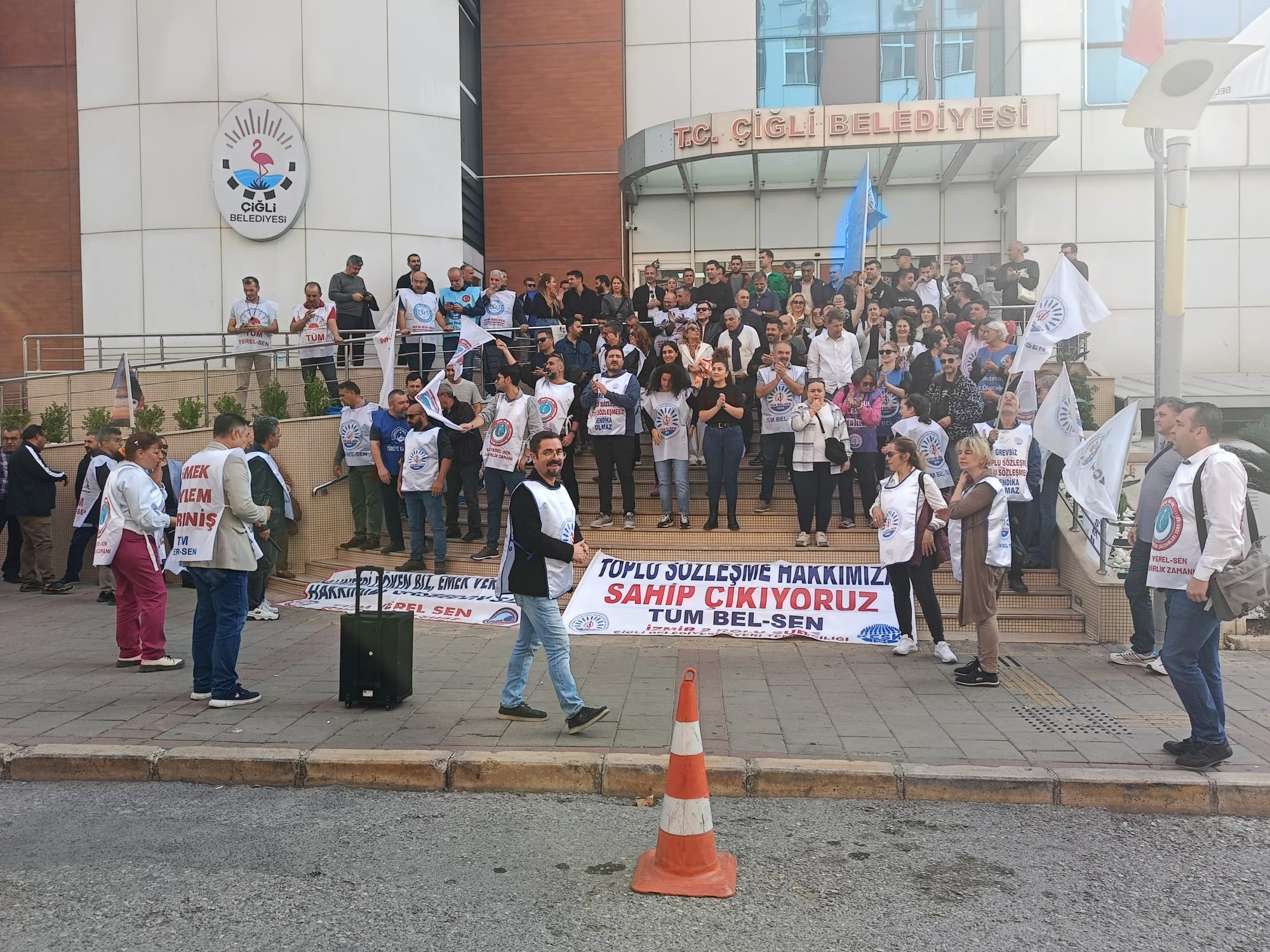 EGEDESONSÖZ – İzmir’in Çiğli ilçesinde belediye çalışanlarının başlattığı eylem 16. gününe girdi.