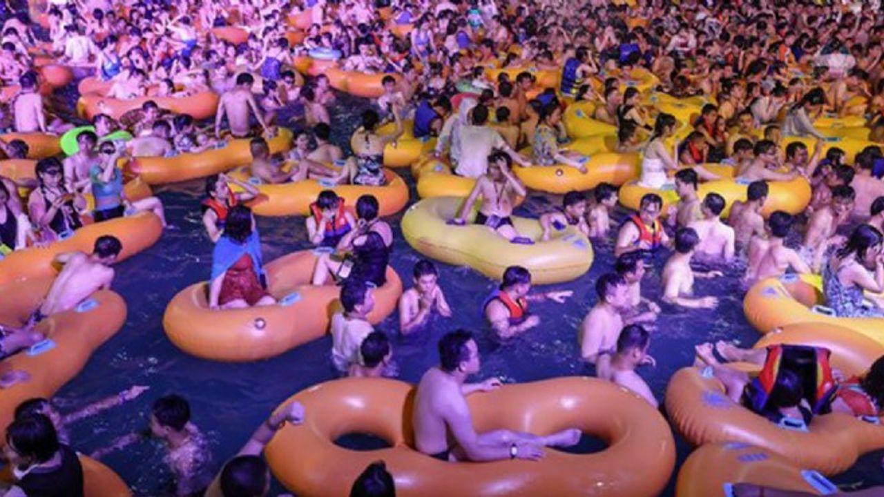 Dünyada Çin dışında koronavirüsle yoğun mücadele sürerken, Vuhan Maya Beach Water Park'ta çekilen fotoğraflar ve videolar ise viral olmuştu. (BBC)