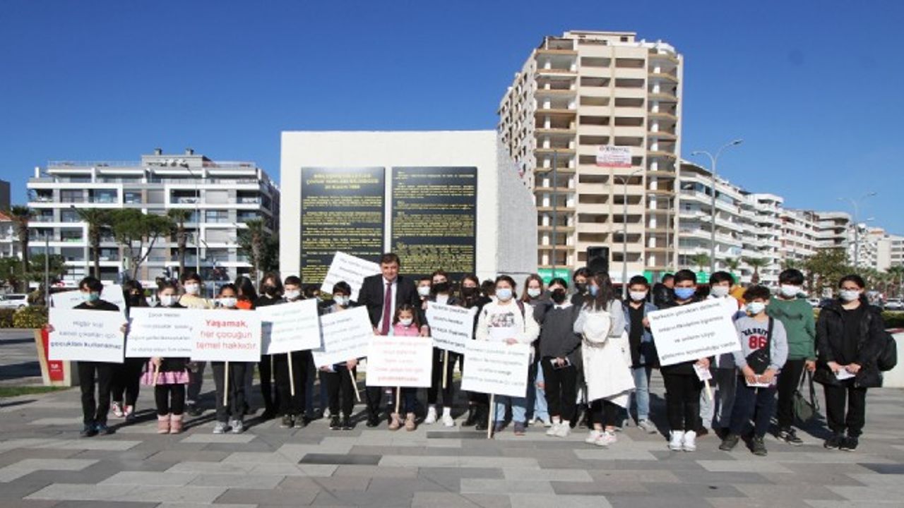 Karşıyaka Çocuk Belediyesi Başkan Yardımcısı Yiğit Efe Ümütlü ise törende yaptığı konuşmada şunları söyledi: 'Bizler, büyük önderimiz Gazi Mustafa Kemal Atatürk'ün küçük hanımları, küçük beyleri ve çocuk kenti Karşıyaka'nın çocuklarıyız. Ülkemizin ve yeryüzünün her yerindeki çocukların bizim yaşadığımız güzellikleri yaşamasını istiyoruz. Herkesi bizlere saygı göstermeye, güzel bir gelecek bırakmak için daha fazla çaba göstermeye davet ediyoruz. Arkadaşımız ve Karşıyaka Belediye Başkanımız Dr. Cemil Tugay'a bize gösterdiği ilgi ve Karşıyaka Çocuk Belediyesi için teşekkür ediyor, bu konuda herkesin Karşıyaka'yı örnek almasını istiyoruz. Her çocuk, haklarıyla çocuktur; bunu bilen, savunan ve gereğini yapar herkese teşekkür ediyoruz. Biz size güveniyoruz, siz de ülkemizin ve yeryüzünün geleceği için bize güvenin. Yaşasın Dünya Çocuk Hakları Günümüz!'