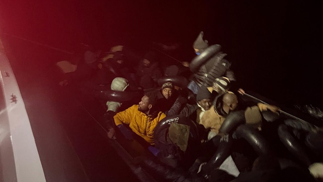 Ekiplerce durdurulan lastik bottaki 7'si çocuk 50 düzensiz göçmen yakalandı.