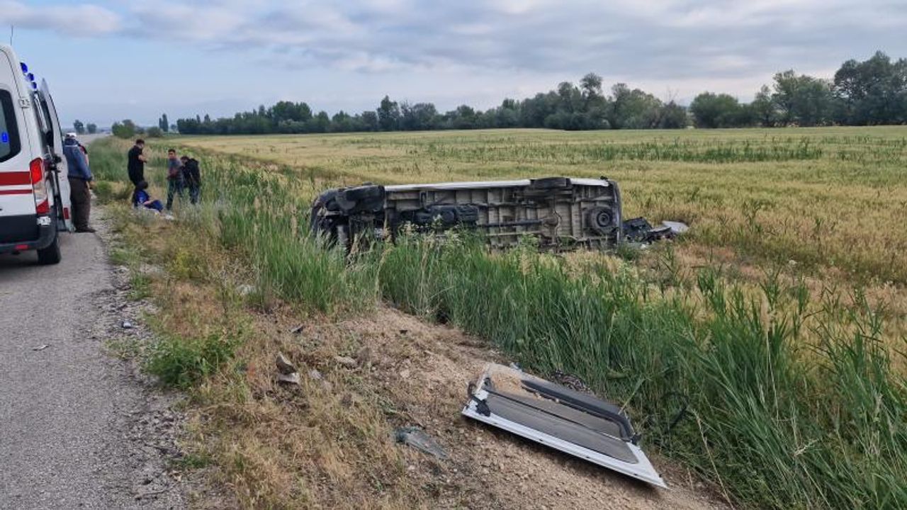 Çorum-Yozgat kara yolunda A.İ. idaresindeki minibüs, Koçhisar Barajı mevkisinde yol kenarına devrildi.