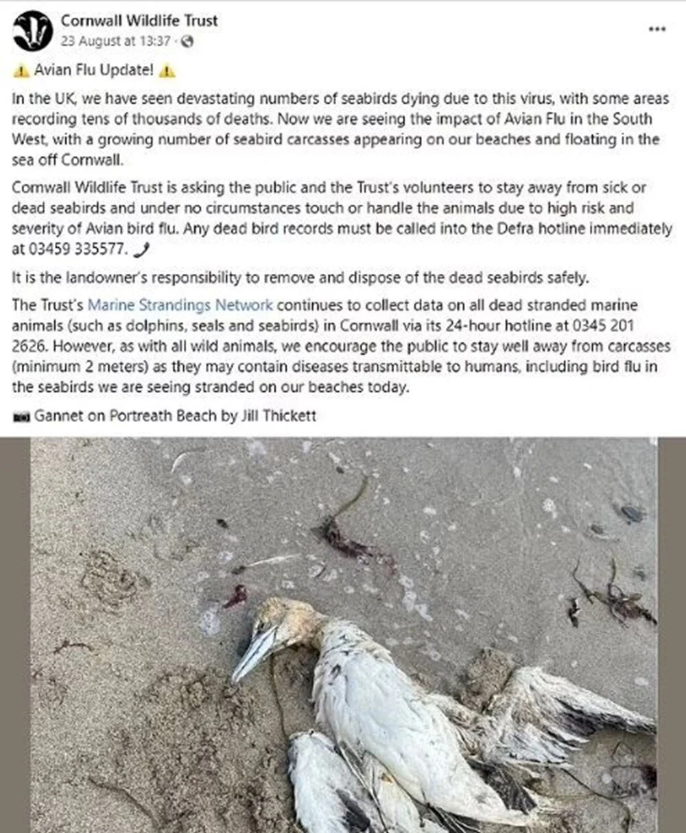 İngiltere'deki Cornwall Wildlife Trust geçen hafta bir uyarı yayınlayarak halkı hasta veya ölü deniz kuşlarından uzak durmaya ve 'hiçbir koşulda hayvanlara dokunmamaya' çağırdı. East Anglia Üniversitesi'nde bulaşıcı hastalık uzmanı olan Prof. Dr. Paul Hunter konuyla ilgili yaptığı açıklamada, 'Artık kuş gribinin insanlarda salgına neden olup olmayacağını konuşmak yerine bunun ne zaman gerçekleşeceğini konuşmamız gerekiyor' dedi.