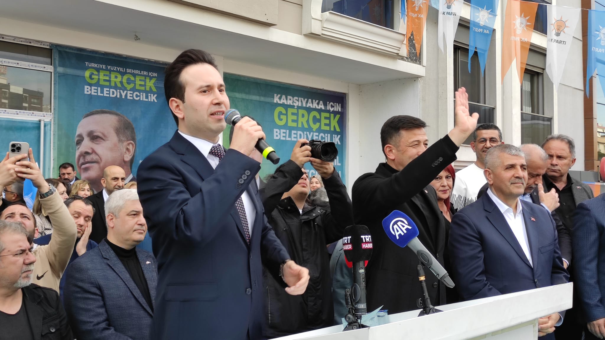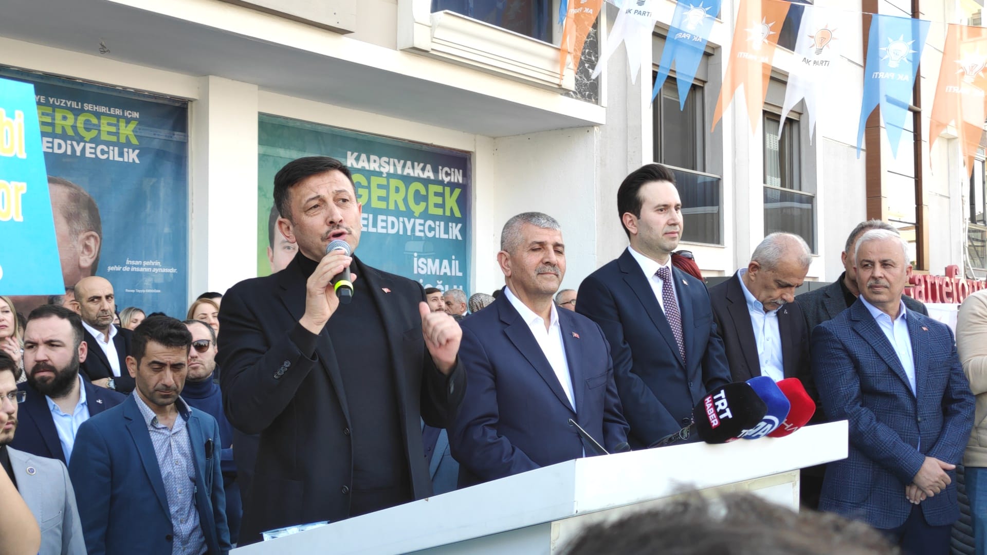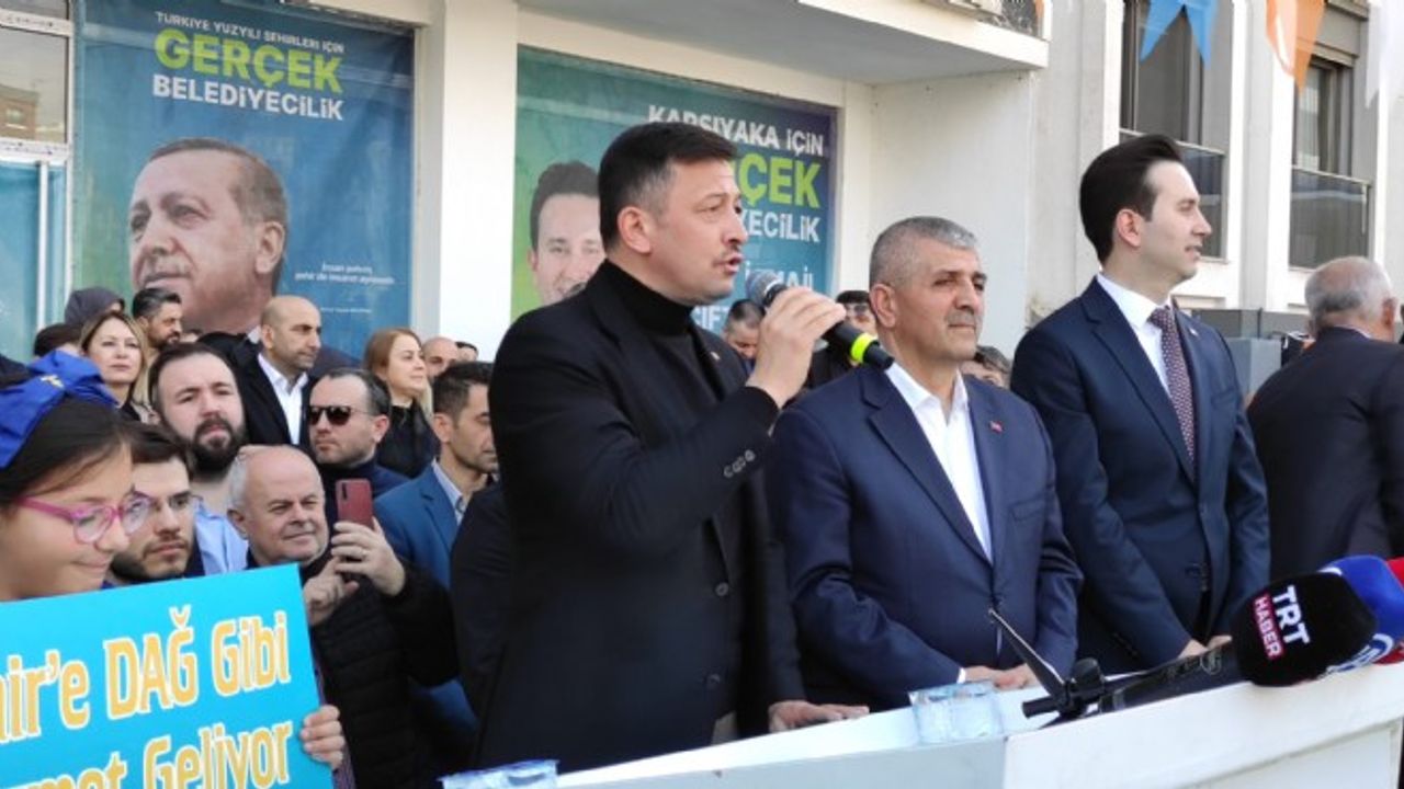 'Elbette her ilçemizin, her mahallemizin ayrı ayrı sorunları, ayrı ayrı ihtiyacı var. Cumhuriyet Mahallesi ihtiyacı ile başka bir mahallemizin ihtiyacı aynı değil. Ama bir şey var. İsmail Çiftçioğlu hangi mahallenin hangi sorunun olduğunu bildiği gibi çözüm önerisini bildiği gibi İzmir'in evladı Hamza Dağ kardeşiniz de hangi mahallenin ne sorunu var, neyi çözmesi gerekiyor bunu gayet iyi biliyor. Ve bunun da yanında heyecanımız var bunları çözmeye. Karşıyakamız merkez ilçelerimizden biri olması bu sorunlardan doğrudan etkileniyor. Bu güzel ilçede ikamet eden 341 bin 857 vatandaşımızın her biri daha yaşanabilir bir İzmir'i hak ediyor. Tüm projelerimizi saymaya kalksak diğer programlarımıza yetişemeyiz. Ancak Karşıyaka'yı yakından ilgilendiren birkaç konuyu sizlere anlatmak istiyorum... İki tane tramvayımız var. Biri Karşıyaka, diğeri Konak tramvayı. Ikisi ayrı ayrı yerlerde. İkisini birleşmesi gerekiyor mu? Gerekiyor. Onu kim yapar? Biz yaparız Allah'ın izniyle. Yalı bulvarında yapacağımız battıçıktı ile çarşıyı denizle buluşturacağız. Orada battıçıktıya ihtiyaç olduğu yıllardır söylendi. Her belediye başkanı bunun vaadini verir. Yapıldı mı? Hayır. Ama kim yapacak? İsmail Çiftçioğlu ve Hamza Dağ bunu yapacak inşallah.'