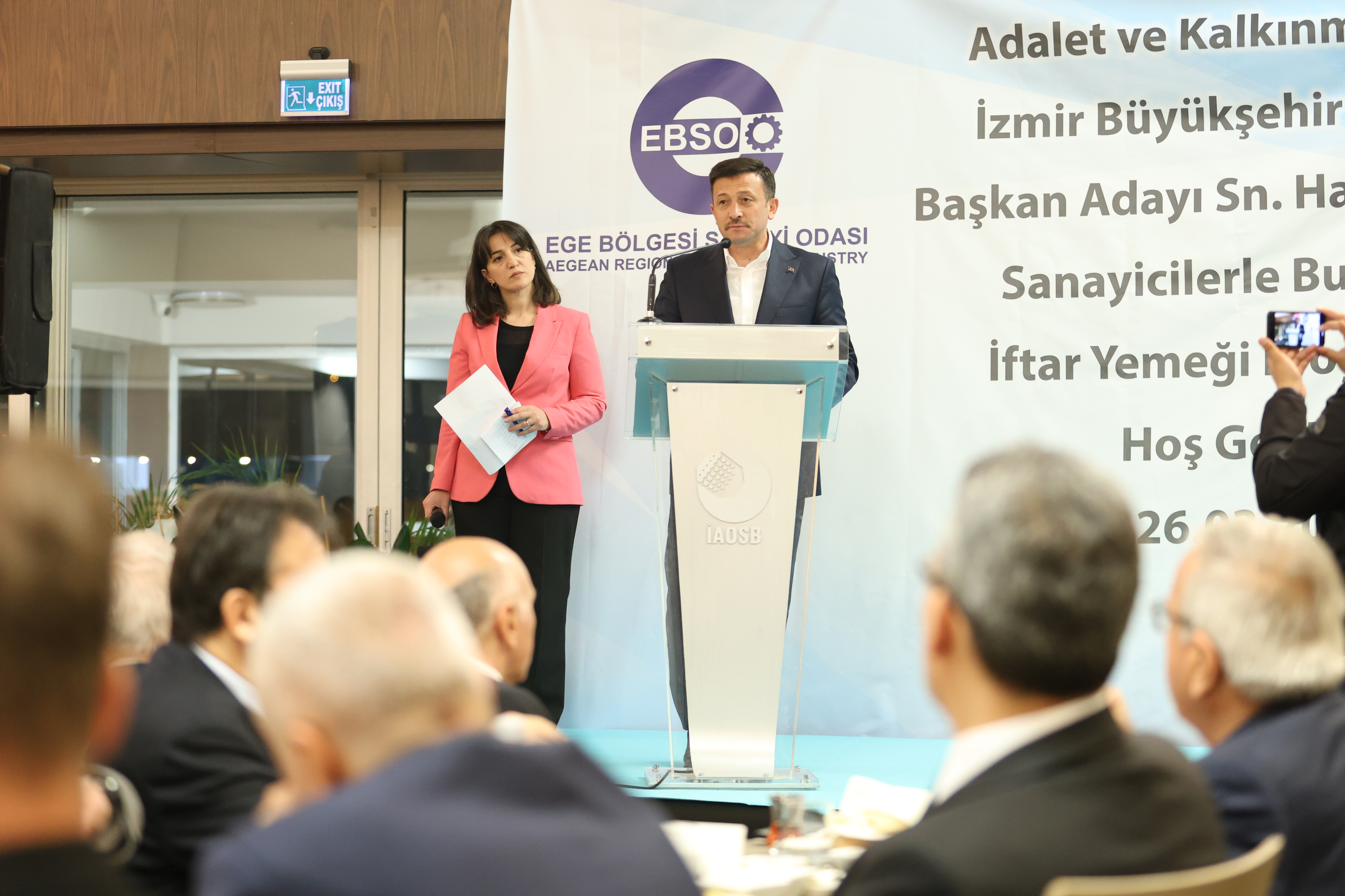 Cumhur İttifakı İzmir Büyükşehir Belediye Başkan Adayı Hamza Dağ, aralıksız bir şekilde sürdürdüğü seçim çalışmalarına Çiğli'de devam etti. Dağ, Atatürk Organize Sanayi Bölgesi'nde, Ege Bölgesi Sanayi Odası tarafından verilen iftar yemeği programına katıldı. Programa AK Parti İzmir Milletvekili Şebnem Bursalı, MHP Genel Sekreter Yardımcısı, İzmir Milletvekili Tamer Osmanağaoğlu, Cumhur İttifakı Karşıyaka Belediye Başkan Adayı İsmail Çiftçioğlu, Cumhur İttifakı Çiğli Belediye Başkan adayı Murat Gökçekaya ve Ege Bölgesi Sanayi Odası Yönetim Kurulu Başkanı Ender Yorgancılar ve Atatürk Organize Sanayi Bölgesi Yönetim Kurulu Başkanı Cem Karace de katıldı.