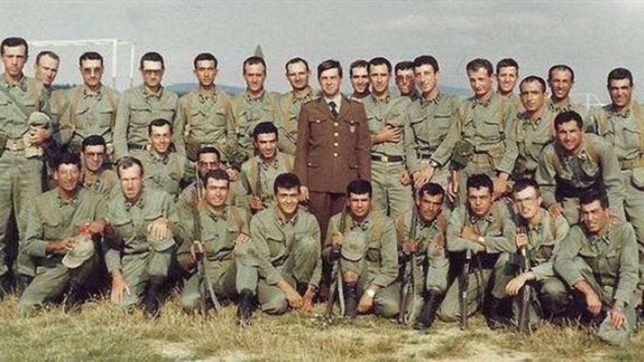 Tuzla Piyade Okulu'nda takım komutanı olarak eğitim aldıktan sonra yine İstanbul Hasdal 77'nci Piyade Komutanlığı'nda askerliğini yapan Cumhurbaşkanı Erdoğan, askeri üniformayla fotoğrafın en solunda ayakta ilk sırada yer alıyor. (DHA)