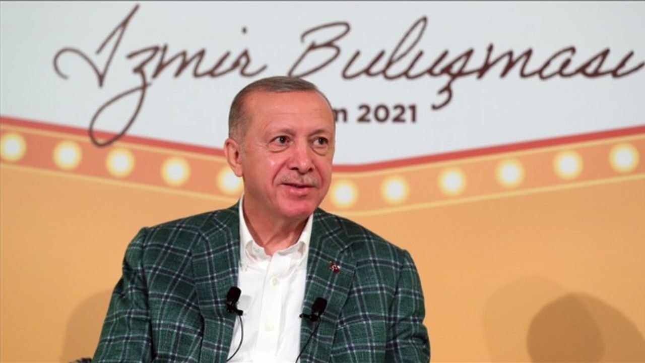 Buradaki konuşmasına kendisini dinleyenleri selamlayarak başlayan Erdoğan, İzmir'de olmaktan duyduğu memnuniyeti dile getirdi.