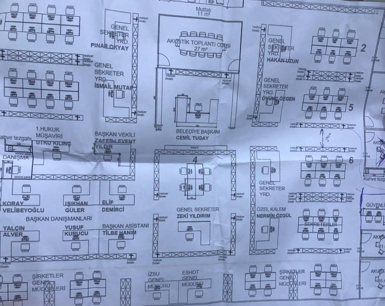 Hazırlanan yerleşim planına göre, 3 numaralı holde belediye başkanı, genel sekreter, genel sekreter yardımcıları, başkan yardımcıları ile belediye iştirak şirketlerinin genel müdürleri, aynı mekânda, açık ofis sistemiyle bir araya gelecek.
