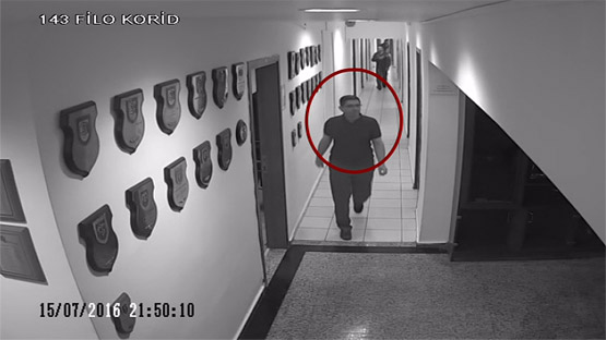 Darbe girişiminin yaşandığı geceye ilişkin görüntülerde, Batmaz'a üsteki askerlerin selam verdikleri kayıtlara yansıdı. Rütbeli askerlerin başlarıyla selam verdiği Batmaz'ın 143.Filo koridorundaki rahat tavırları dikkati çekti.