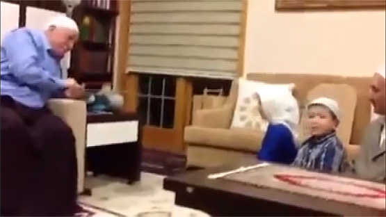Görüntülerde koltukta bulunan Fetullah Gülen'in karşısında iki çocuk yerde oturuyor. Onların arkasında ise yine yerde Adil Öksüz bulunuyor.