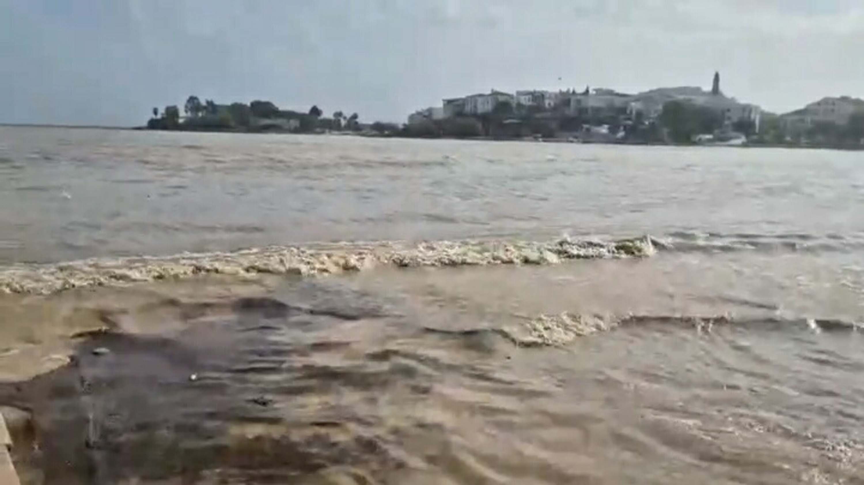 Öte yandan derelerden denize taşınan çamurlu su nedeniyle İskele Mahallesi Kumluk Koyu, kahverengiye döndü. (DHA)