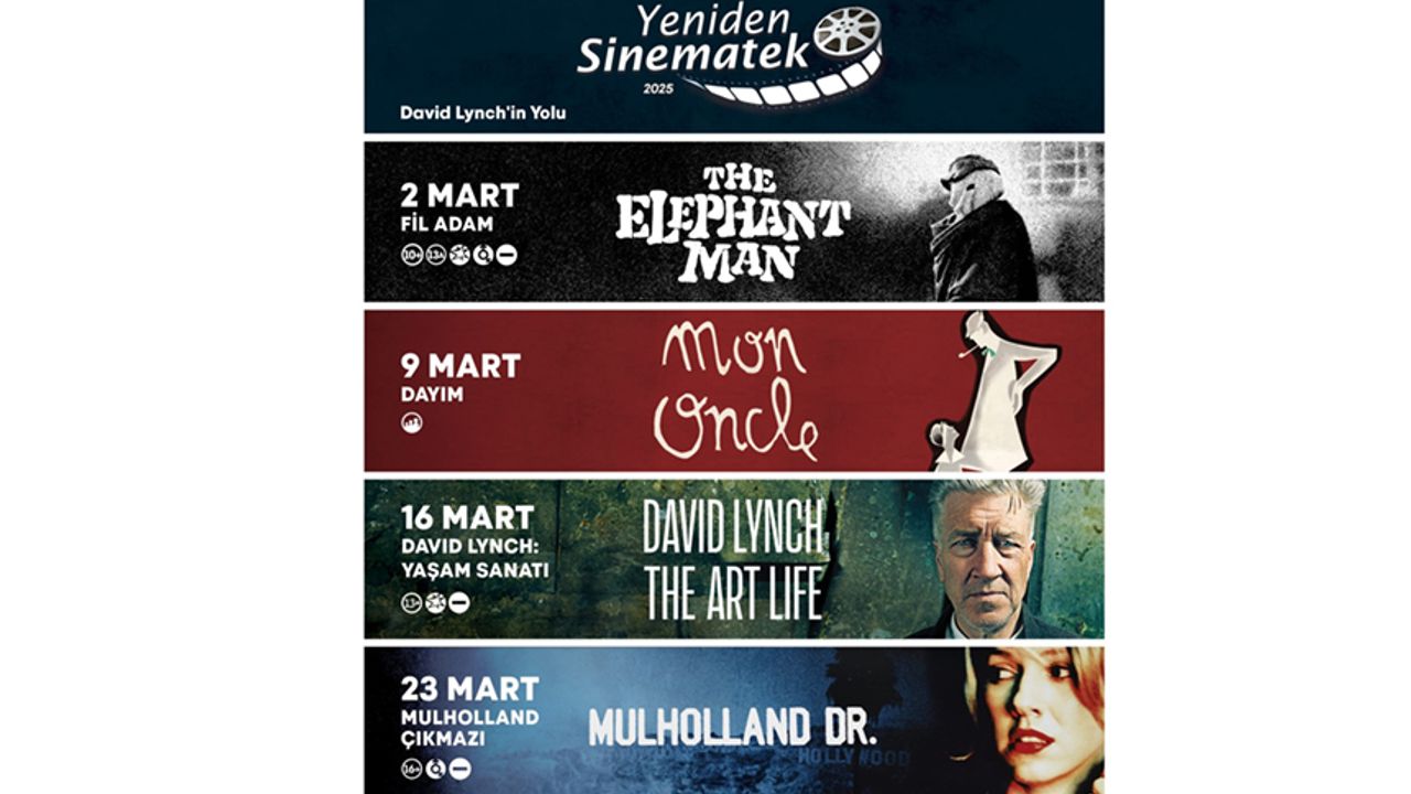 İzmir Büyükşehir Belediyesi Yeniden Sinematek film gösterimleri, birbirinden güzel filmleri İzmirlilerle buluşturmaya devam ediyor. Mart ayı boyunca gösterilecek filmler, ücretsiz olarak gösterime sunulacak. Mart ayı gösterimleri, 16 Ocak'ta hayatını kaybeden yönetmen David Lynch'in anısına "David Lynch'in Yolu" teması ile beyaz perdeye yansıtılacak. Dünya sinemasına unutulmaz eserler kazandıran David Lynch'in anısına oluşturulan seçkide komediden gerilime; belgeselden drama farklı türlerde dört film yer alacak. Seçki kapsaminda Lynch'in filmlerinin yanı sıra onun sinemaya bakışını ve kariyerinin şekillenişini sinema izleyicisine daha iyi aktarabilmek adına kendi sinema dilini kurarken etkilendiği Jacques Tati'nin bir filmi ve David Lynch'in yaşantısına ve sanatına ışık tutan bir belgesel de beyaz perdeyle buluşacak. Birbirinden etkileyici David Lynch hikayelerinde ve yönetmenin yaşantısında bir yolculuğa çıkmak isteyen tüm sinemaseverler ücretsiz gösterimlere davetli olacak.