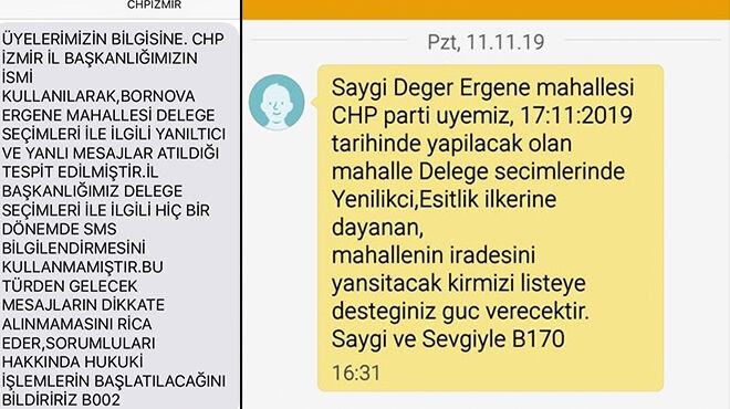 Partililerin ilçe ve il başkanlığını telefon yağmuruna tutmasının ardından parti hukukçuları harekete geçti. CHP İzmir İl Başkanlığı, tarafsız olduklarını, böyle bir mesajı göndermediklerini ve yapanlar hakkında hukuki işlem başlatacaklarını duyurdu.