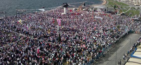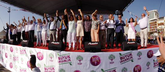 Barış duygularıyla dualarıyla burayı dolduran 10 binlere selam olsun. Bir kez daha buradan Gündoğdu Meydanı'nda Türkiye'nin özgür yarınları, barıştan kardeşlikten yana yarınları için bir aradayız. İzmir halkını da İzmir'de yaşayan bütün dostlarımızı kutluyorum. 7 Haziran cumhuriyet tarihimizin görüp görebileceği seçim olacak. Sonuçları itibariyle en büyük kırılmayı yaratan seçim olacak. HDP tarafından kırılma olacak. Tek adamlığa, diktatörlüğe asla izin vermeyeceğiz. Gelecek 10 yılların nasıl olacağına dair bir karar vereceğiz 7 Haziran'da…