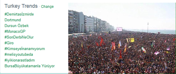 Büyük katılıma sahne olan Demirtaş'ın İzmir mitingi sosyal medyayı da salladı! Miting #Demirtaşİzmirde hashtag'iyle Twitter'dan trend topic olurken, binlerce kullanıcı Gündoğdu Meydanı'ndan fotoğraf ve izlenim paylaştı.