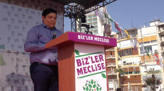 Doğa bizim malımız değildir. Doğaya hayvanlara sahip çıkarak ancak insan gibi kalabiliriz. Doğayı katledenler kendi insanlığını katlederler. Bir yerde doğa bitmişse artık türkü, şarkı, roman bitmiştir. Gelecek bitmiştir. Kestikleri insan onurudur ağaç değildir. Bu vahşete kalkınma diyorlar. Aliağa'da olduğu gibi her gün çevre felaketiyle karşı karşıyasınız. İzmirliler olarak bu bizim hükümetimiz değil demenize rağmen böyle oluyorsa bunda bir terslik var. İzmir'de nereye köprü, yol, park yapılacaksak buna İzmirli karar versin. Demokratik özerklik budur. Seçimlerin en önemli aşamalarından biri de sandıklara sahip çıkma aşamasıdır. Sizler fedakarlıkla çalışma yürütüyorsunuz. Zaten bu eşit bir yarış değil. Bütün kurumlar AKP'nin emrinde. Buna rağmen HDP'den korkuyorlar. İzmir'deki bütün gençler gönüllüler sandık başında görev almalılar. Hırsıza engel olarak gerçek halk iradesini ortaya çıkarmalıyız. 7 Haziran akşamı Türkiye'de düğün olacak bayram olacak inşallah. Adaylarımızın etrafında her iki bölgede kampanyayı büyüterek sürdürmelisiniz. Sahada çalışmaya devam edersek bunlardan kurtulacağız. Çıkıp size parmak sallamayacak. Onun yüz ifadesini değiştireceğiz. Halka saygı duyması gerektiğini ona öğreteceğiz.