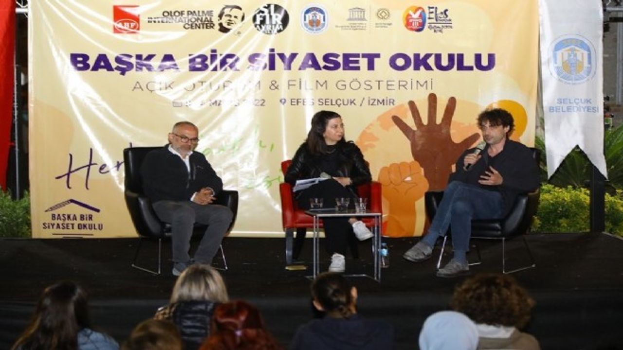 Helin Şahin'in moderatörlüğünde düzenlenen Demokrasinin Geleceği başlıklı açık oturuma Başka Bir Siyaset Okulu öğrencileri, Selçuk Belediye Başkanı Filiz Ceritoğlu Sengel ve Selçuklular da katılım gösterdi.