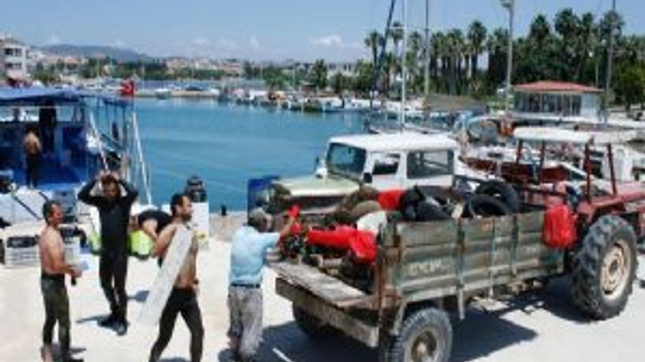 Muğla'nın Datça İlçesi'nde, turizm sezonu öncesi yapılan deniz dibi temizliğinde, sudan iki traktör dolusu çöp çıkartıldı.