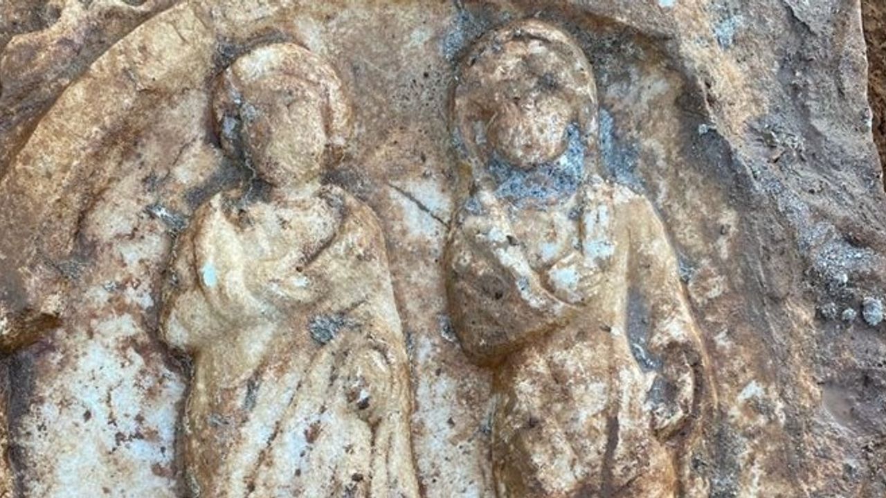 Hallaçlar Mahallesi'ndeki inşaat alanında iş makinesiyle yapılan kazı sırasında çalışanlar, üzerinde insan figürü bulunan mermer parçası ile kiremitlere rastladı. İşçiler emniyete haber verdi.