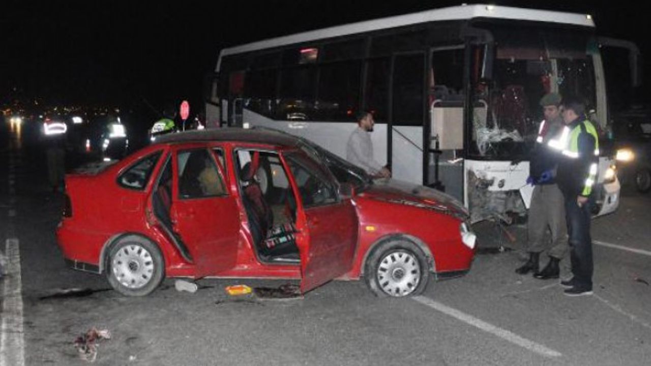 Kaza, saat 00.30 sıralarında Acıpayam İlçesi Antalya karayolu Akalan kavşağında meydana geldi. Bir süt fabrikasına işçileri götüren Kamil Alkan yönetimindeki 20 KS 488 plakalı servis otobüsü, Ahmet Özırmak yönetimindeki 10 BIR 59 plakalı otomobile çarptı.