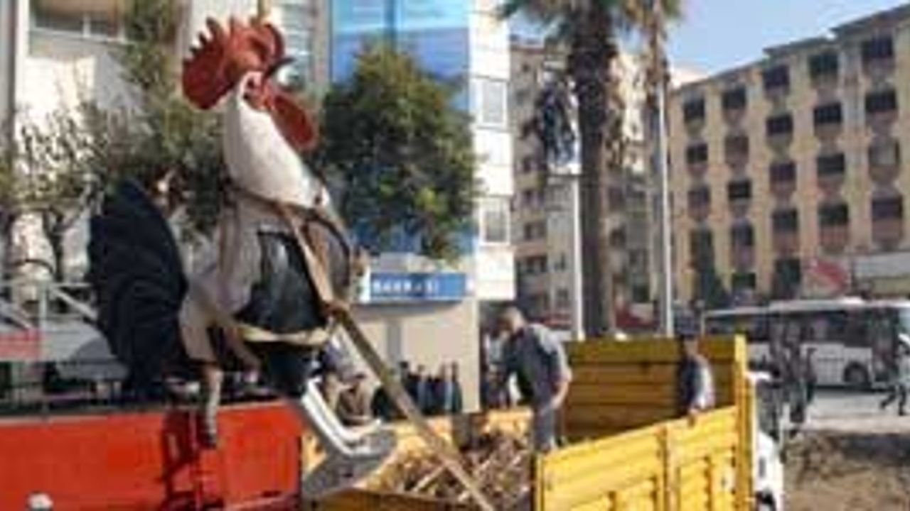DENİZLİ - Denizli Belediyesi'nin Gazi Bulvarı'na sürdürdüğü çevre düzenlemesi çalışmaları nedeniyle, Delikliçınar Meydanı'ndaki kentin simgesi olan çil horoz heykeli de söküldü. 18 yıl önce dönemin belediye başkanı CHP'li Ali Marım tarafından yaptırılan horoz heykelinin sökülmesini Denizli Belediye Başkanı Osman Zolan da izledi. Belediye Başkanı Osman Zolan, sökülmeden önce, personeli ve gazetecilerle heykel önünde hatıra fotoğrafı çektirdi.