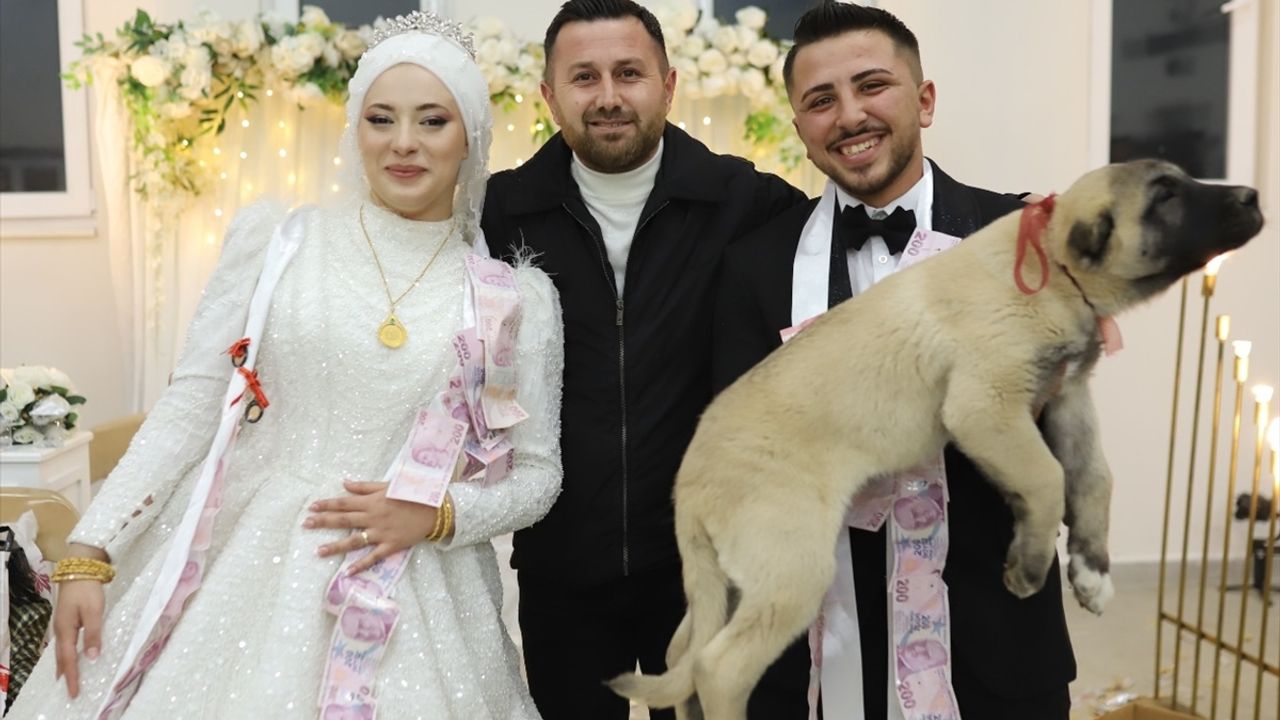 Düğüne katılan davetlilerden Süleyman Gültekin (35), damada yavru kangal köpeği hediye etti.