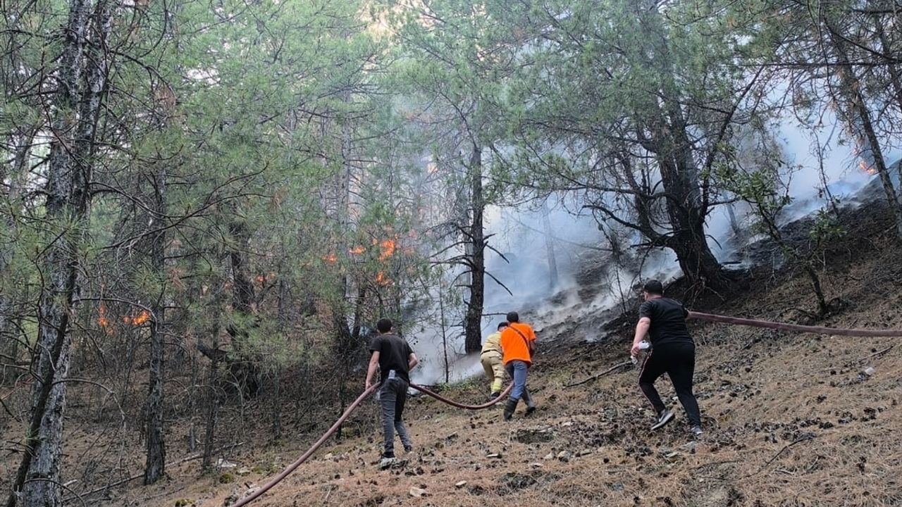 Yangın ilçenin Bostanyeri Mahallesi yakınlarında etkisini sürdürmeye devam ediyor.