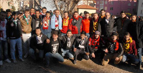 Sporda şiddetin sona ermesini savunan, 'Taraftar Hakları Derneği'ne mensup bir grup futbolsever, 20 değişik kulübün formasıyla stada gelip, dostluk mesajları verdi.