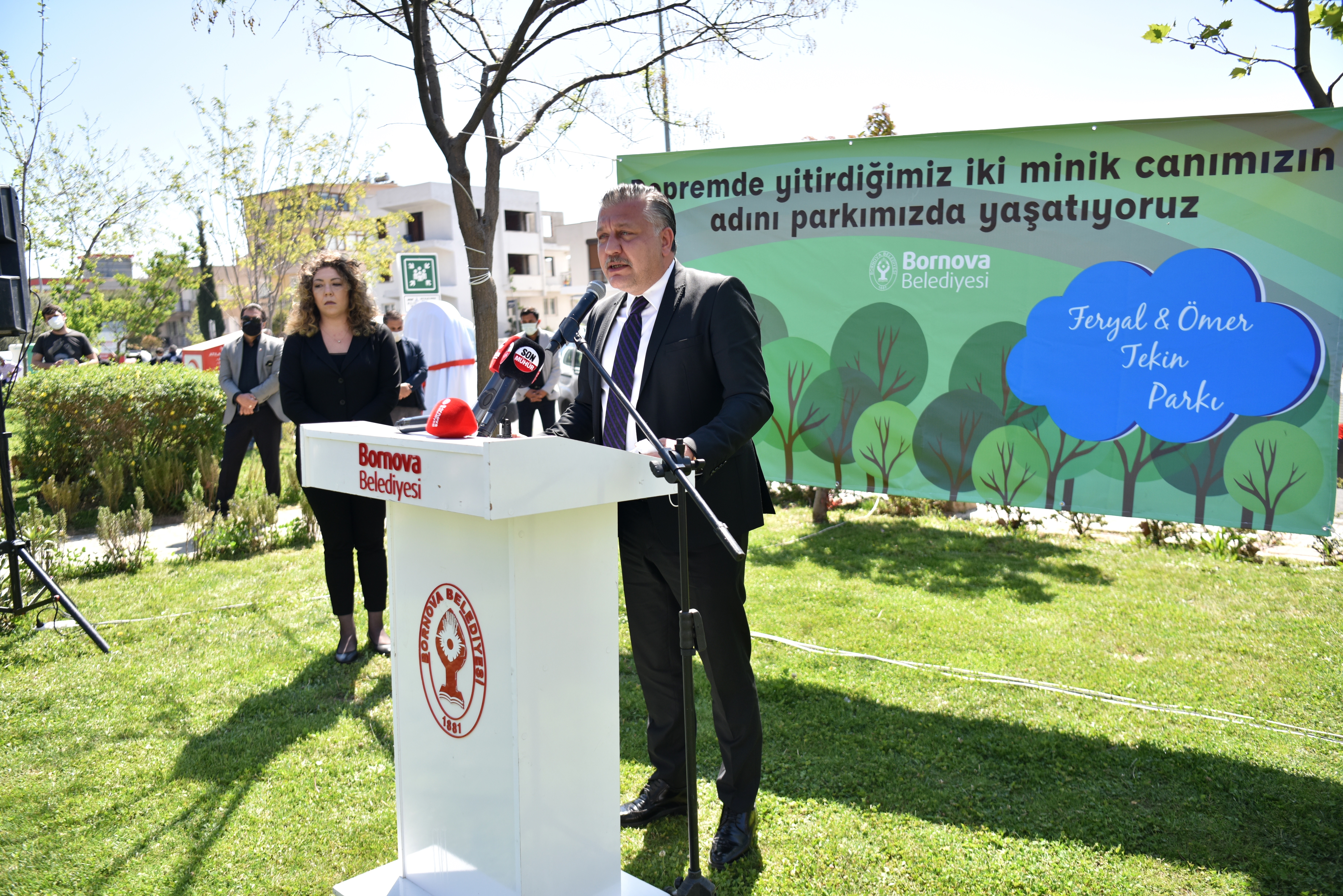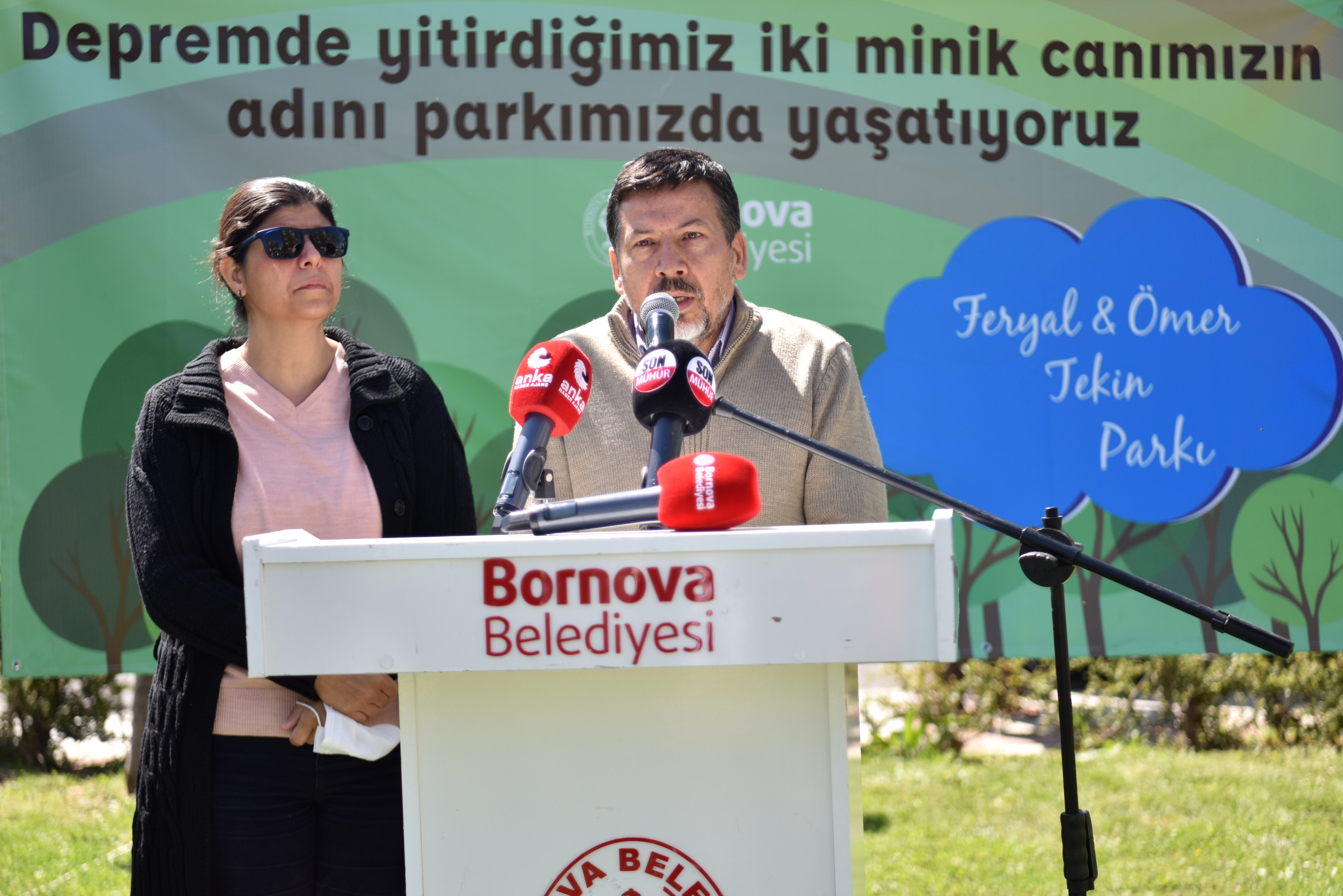 İzmir Depremi'nde yaşamını yitiren Feryal Özge Tekin(14) ve Ömer Yiğitcan Tekin(4) kardeşlerin ismi Bornova'da ölümsüzleştirildi. Rıza Bey Apartmanı'nda Halaları Fatma Tekin Öztürk ile birlikte yaşamlarını yitiren iki kardeşin adı Evka-4 Mahallesi'ndeki evlerinin yakınında bulunan parka verildi. CHP Bornova İlçe Başkanı Öztürk Çapın, İYİ Parti Bornova İlçe Başkanı Mustafa Tabak, Bornova Belediyesi Başkan Yardımcıları; Barbaros Taşer, Ercan Kahya, Orhan Şaylan, bürokratlar, meclis üyeleri, muhtarlar ve vatandaşların katıldığı törende iki kardeşin anısına çınar ağacı fidanı da dikildi.