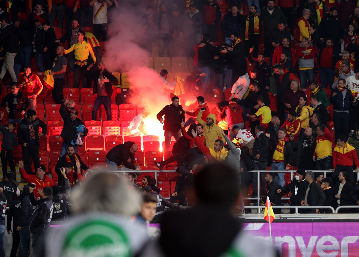 İzmir'de saat 19.00'da başladıktan sonra 19'uncu dakikada çıkan olaylar nedeniyle hakem tarafından tatil edilen derbi maçını izlemeye gelen konuk Altay taraftarları 7 saat statta tutuldu. Kamera kayıtlarında Göztepe taraftarlarına işaret fişeği atan şüphelinin yanı sıra olayların tarmanmasında müdahil olduğu belirlenen kişilerin yakalanmasının ardından güvenlik gerekçesiyle statta tutulan ve passolig verilerine göre 690 Altay taraftarı için saat 02.00'de tahliye işlemi başlatıldı. Polis ekiplerinin stat çevresi ve güzergah boyunda aldığı önlemlerin ardından Altay taraftarları otobüslere bindirilerek, stattan çıkarıldı. (DHA)