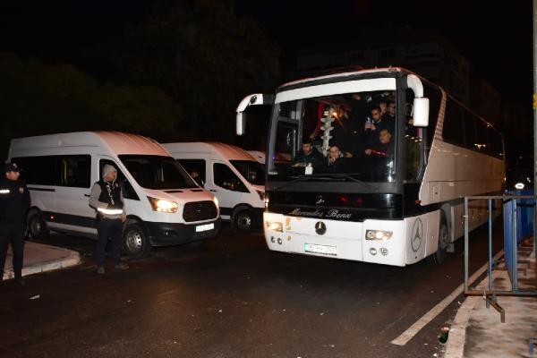 Gürsel Aksel Stadı'nda oynanan ve çıkan olaylar nedeniyle hakemin tatil ettiği müsabakanın ardından güvenlik gerekçesiyle statta kalan siyah-beyazlı oyuncular yaklaşık 4,5 saat bekleyişin ardından Emniyet Müdürlüğüne ait minibüslerle stattan çıktı.