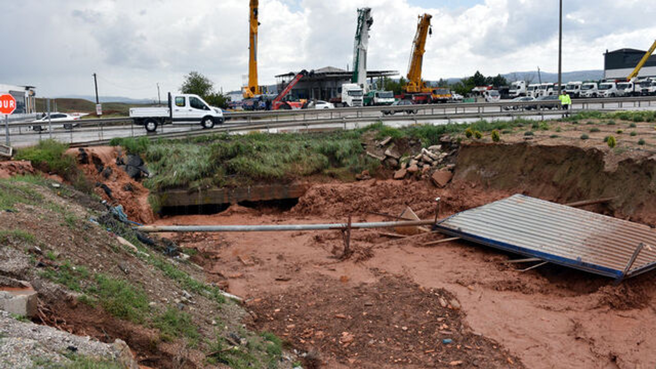 Ankara'nın Polatlı ilçesinde sağanak ve dolu yağışı ile birlikte alt geçitler suyla doldu, bazı ev ve iş yerlerini su bastı.