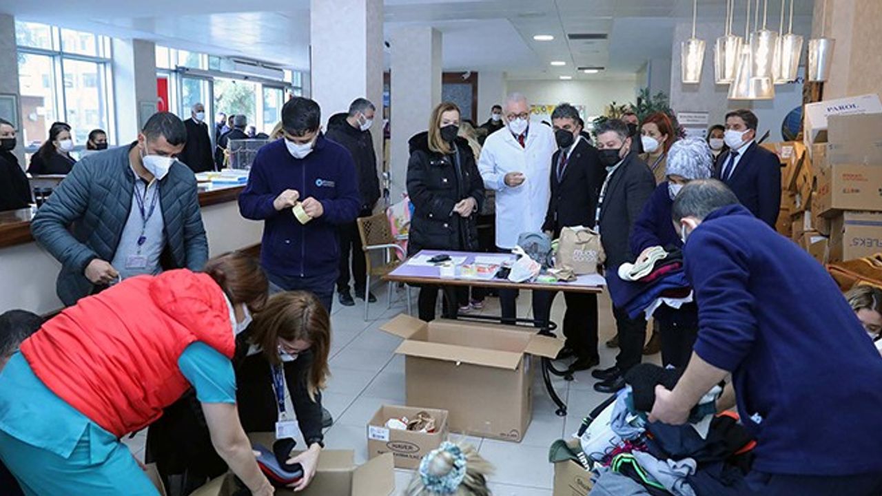 Kahramanmaraş'ta meydana gelen ve 10 kentte yıkıma neden olan depremlerin ardından bölgeye yardım elini uzatan Dokuz Eylül Üniversitesi (DEÜ), dün gönderdiği doktor, hemşire ve paramedikten oluşan grubun ardından bugün de ikinci sağlık ekibini Hatay'a yolcu etti. Üniversitenin kendi imkanları ile yürüttüğü çalışmalar kapsamında; bölgedeki yaralıların tedavisinde kullanılacak tıbbı malzeme ve ilaçları Araştırma Uygulama Hastanesi'nde bir araya getiren DEÜ Rektörlüğü, bütün bu malzemeleri hekimlerden ve hemşirelerden oluşan ikinci grup ile göndermiş oldu. Üniversite bünyesinde yürütülen destek kampanyası kapsamında farklı birimlerden toplanan malzemeler ise ihtiyaç sahiplerine ulaştırmak üzere Türk Kızılay'ının Buca Şubesi'ne teslim edildi.