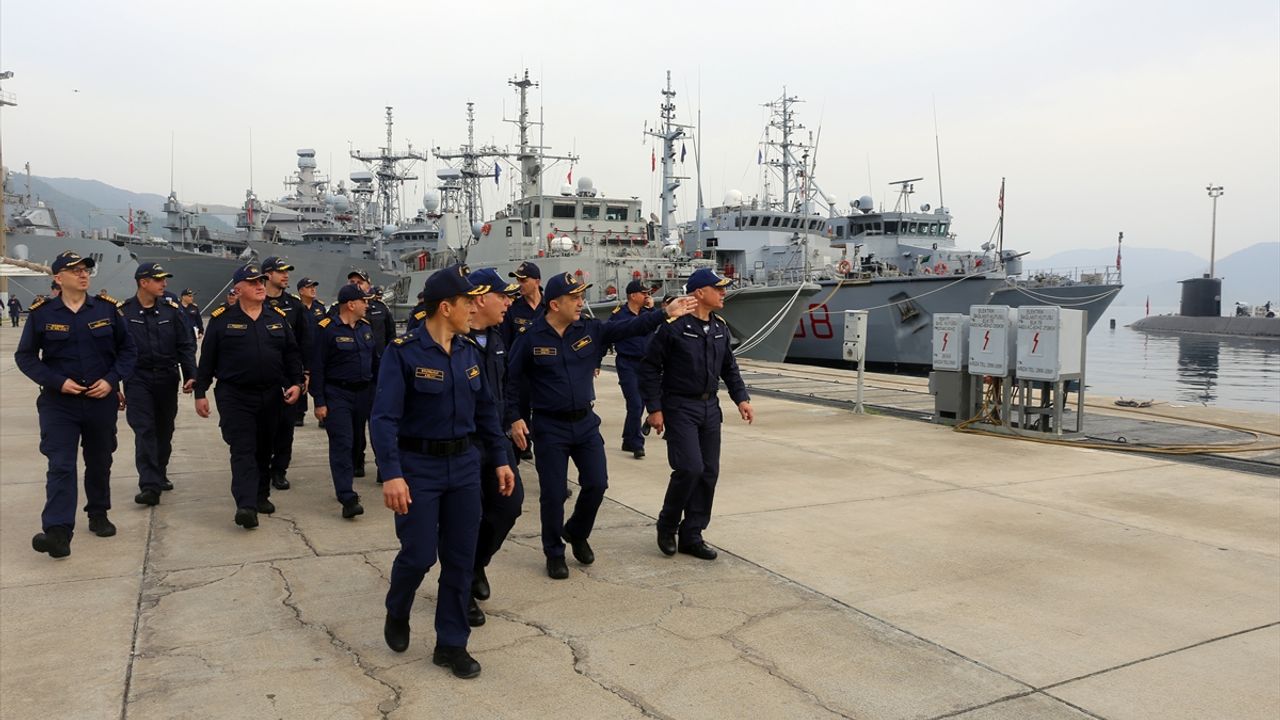 Marmaris'teki Aksaz Deniz Üs Komutanlığı'nda bulunan TCG Sancaktar fırkateyninde düzenlenen brifingde, Deniz Kurmay Binbaşı Ali Ercüment Opçin sunum yaptı.