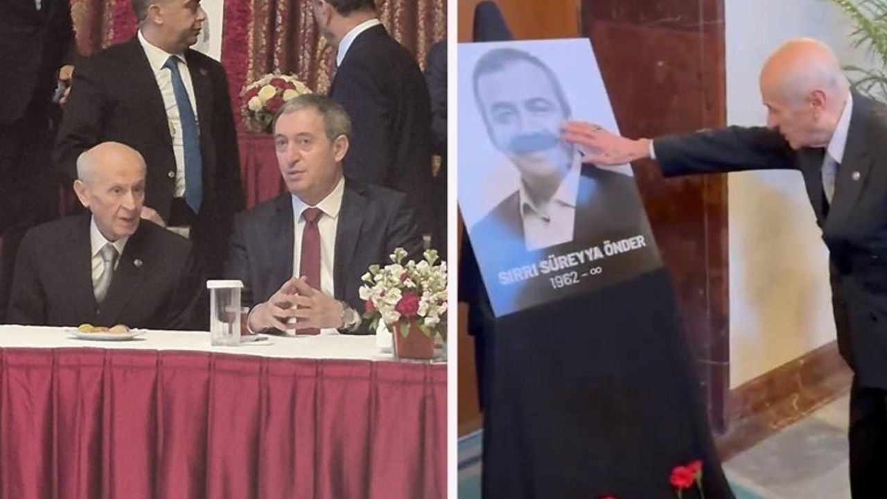 Devlet Bahçeli, Sırrı Süreyya Önder'in fotoğrafını severek rahmet diledi.