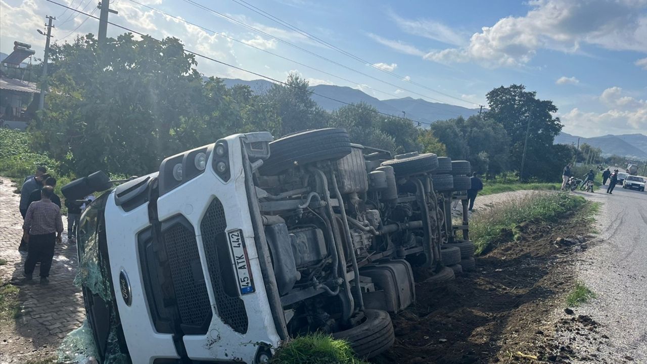 Ahmet K. (28) yönetimindeki 45 ATK 442 plakalı kamyon, Alaşehir kara yolunda yoldan çıkarak yan yattı.
