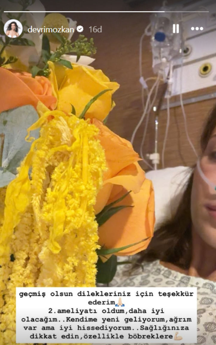 Devrim Özkan, böbrekleriyle ilgili bir operasyon geçirdiğini duyurdu. Özkan, sağlık durumu hakkında şu ifadeleri kullandı; "Geçmiş olsun dilekleriniz için teşekkür ederim. İkinci ameliyatımı oldum, daha iyi olacağım. Kendime yeni geliyorum, ağrım var ama iyi hissediyorum. Sağlığınıza dikkat edin, özellikle böbreklere…"