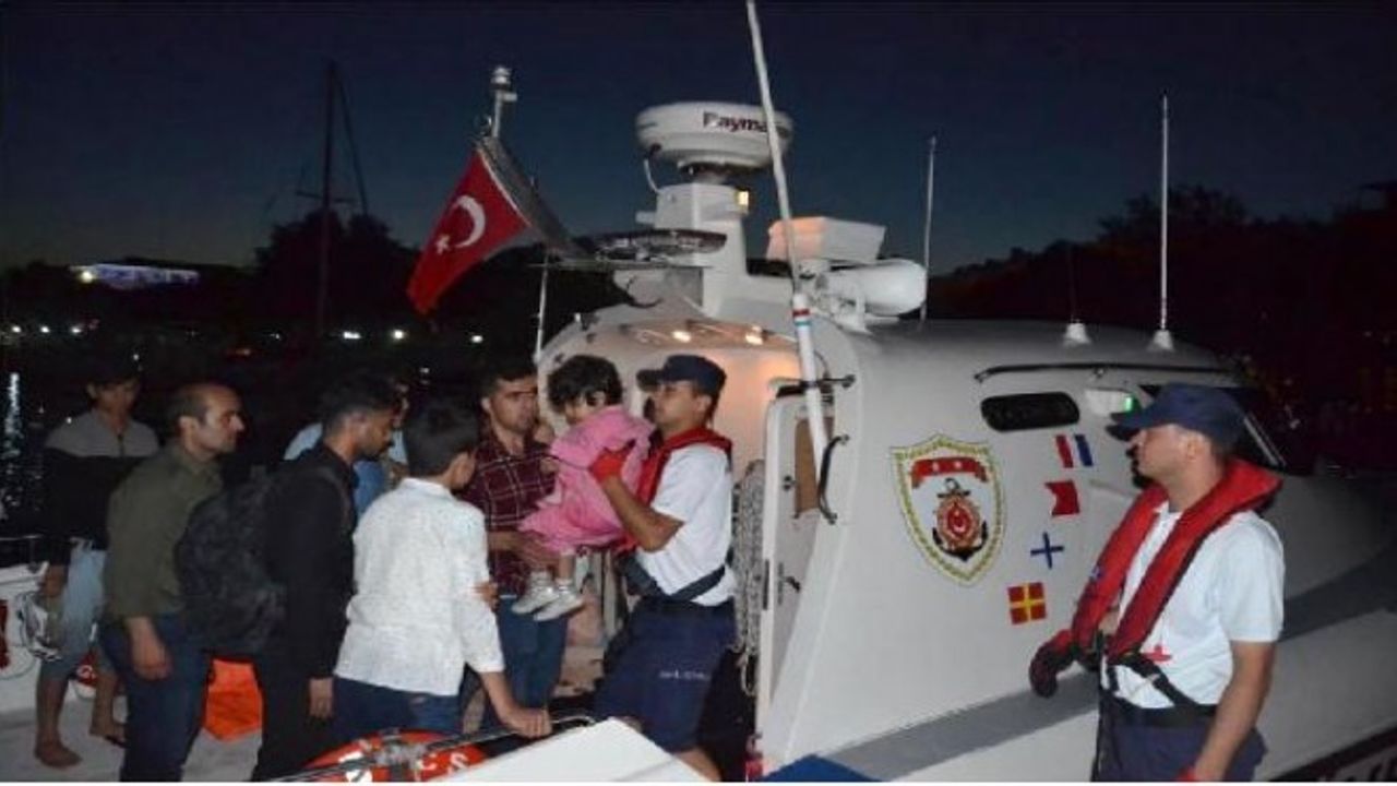 Sahil Güvenlik botuna alınarak kıyıya getirilen kaçaklar, kimlik tespit işlemleri sonrası İl Göç İdaresi Müdürlüğü'ne teslim edildi. (DHA)