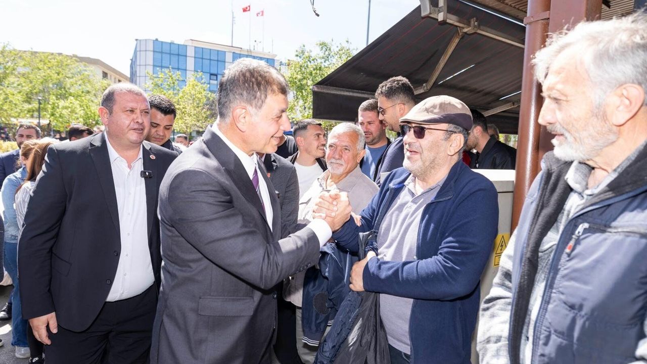 İzmir Büyükşehir Belediye Başkanı Dr. Cemil Tugay, Vakıflar Genel Müdürlüğü tarafından el konulan Meslek Fabrikası'na yönelik başlattığı direnişte kendisine destek veren İzmirlilere teşekkür turuna çıktı.