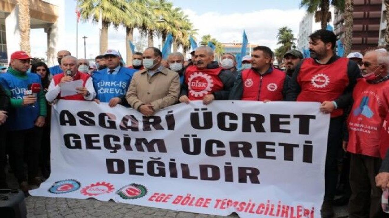 Türk-İş İzmir Bölge Temsilcisi Hayrettin Çakmak ise yüksek enflasyonun engellenmeden sorunların çözülemeyeceğini söyledi. Asgari ücret yapılacak zammın enflasyon sebebiyle işçileri mutlu etmediğini söyleyen Başkan Çakmak, 'Bu ülkede asgari ücreti artırarak hiçbir yere varamayız. Öncelikle enerji maliyetleri düşürülmeli. Daha bunları konuşurken bile zam geliyor. Yüzde 30 zam verilse, ürüne yüzde 40 zam bindiriliyor. Asgari ücrete zam yaparak işçileri mutlu etme şansları yok. Bu aynı zamanda sendikasızlaştırma politikasıdır. Örgütlülüğü engellemek için yapılıyor. Sendikacılar olarak çok dertliyiz. Örgütlenemiyoruz. Kasap, terzi, sarrafın yanındaki asgari ücretliyi konuşmalıyız. Asgari ücret deyince akla gelen bu olmalı. Asgari ücreti öyle bir duruma getirdiler ki toplu pazarlık masası haline geldi. Her 6 ayda 1 bunu konuşacaksak ülkeye ihanet ediyoruz demektir. Bir gün de çıkın şu televizyonlarda örgütlülüğü konuşun. Çalışanlar 6 ayda 1 zam geldiği için örgütlü olmaktan çekiniyor. Mazotu, yemi, enerjiyi, enflasyonu indirmek gerekiyor. Bir kilo kıyma 550 TL. 5 köfte 120 TL. Bunları mı konuşalım, asgari ücreti mi? Asgari ücret artmalı evet. Ancak asgari ücrete zam yaparak bu ülkeyi hiçbir yere taşıyamayacaklar. İşçileri enflasyona ezdirmemeleri lazım' ifadelerini kullandı.