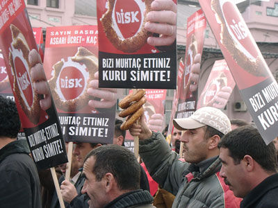 TÜRK- İŞ'in asgari ücret komisyonu masasındaki tutumunu eleştiren Başkan Sarı,'Asıl ses çıkarması gereken asgari ücretliler olmalı ancak asgari ücretliler örgütlü olmadığı için bireysel olarak ses çıkaramıyorlar. Bunların temsiliyetini sağlayan sendikalar da aslında sokaktan mücadeleden uzak bir biçimde masa başında asgari ücret belirlemeye çalışıyorlar. Oysa, eğer asgari ücret toplumun yüzde 50'sini ilgilendiriyorsa tüm tarafların sendikaların, odaların olduğu akademisyenlerin olduğu bilimsel verilerle donatılmış bir masanın etrafında asgari ücretle çalışan insanların da olması gerektiğini ifade ediyoruz' şeklinde konuştu.