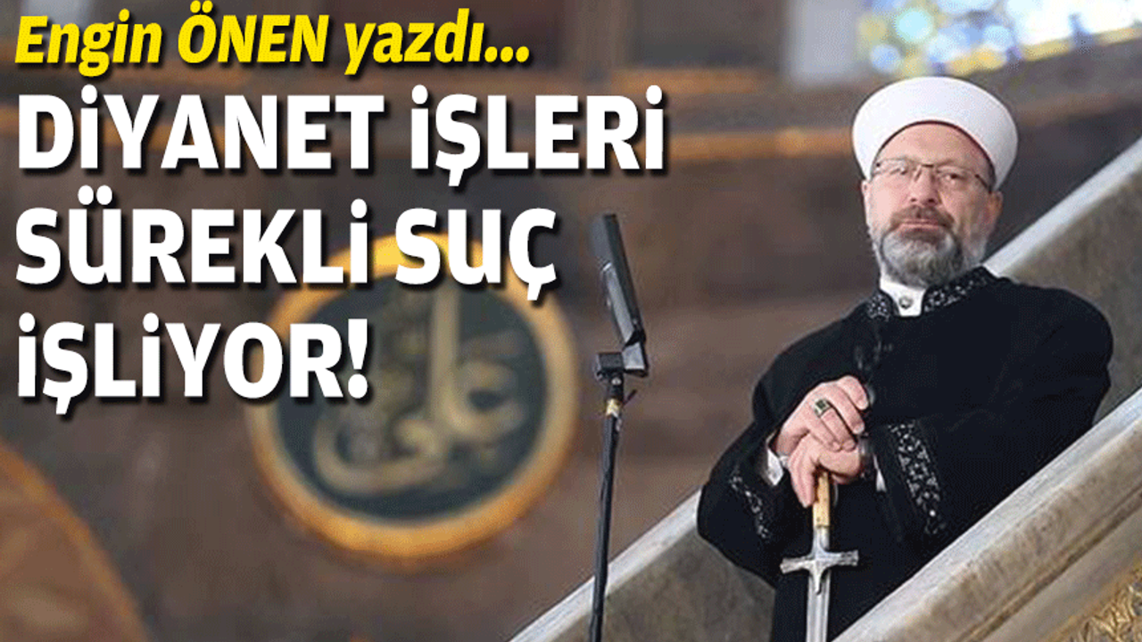 Örnek o kadar çok ki, gelelim Diyanet İşleri Başkanının, Cuma hutbelerine. Son dönemlerde giderek dozu artan bir şekilde, o da suç işliyor. Suçtan ve hukuktan muaf olmanın cesareti ve patrona yaranmanın şehveti ile.