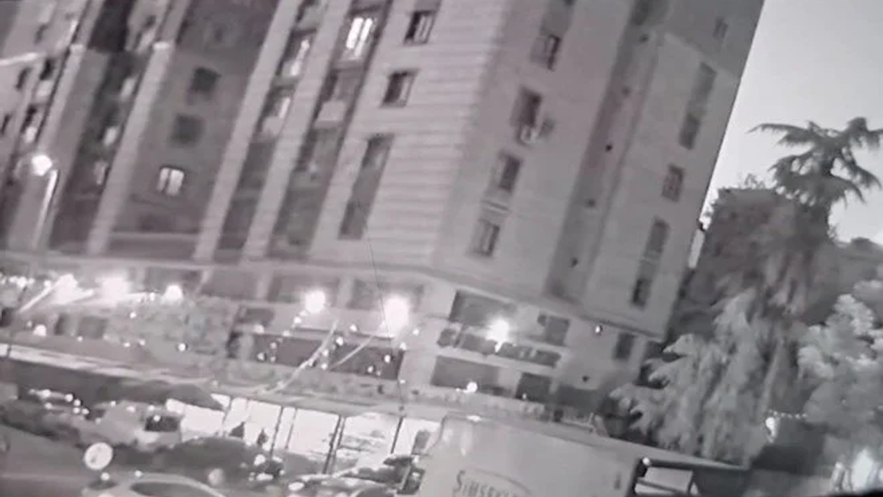 Doğalgaz parlaması sebebiyle panikleyen Dursun Erol'un binanın 7'nci katından atladığı anlar, sokaktaki bir iş yerinin güvenlik kamerası tarafından kaydedildi.
