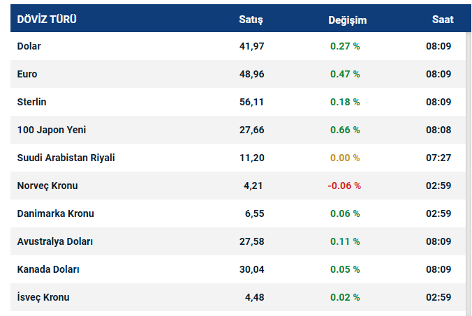Dolar güne 41,8663 liradan başladı. Gün içinde en düşük 41,8475 lira, en yüksek de 41,9747 lira seviyesini gördü. Şu sıralar 41,9671 liradan alıcı buluyor.