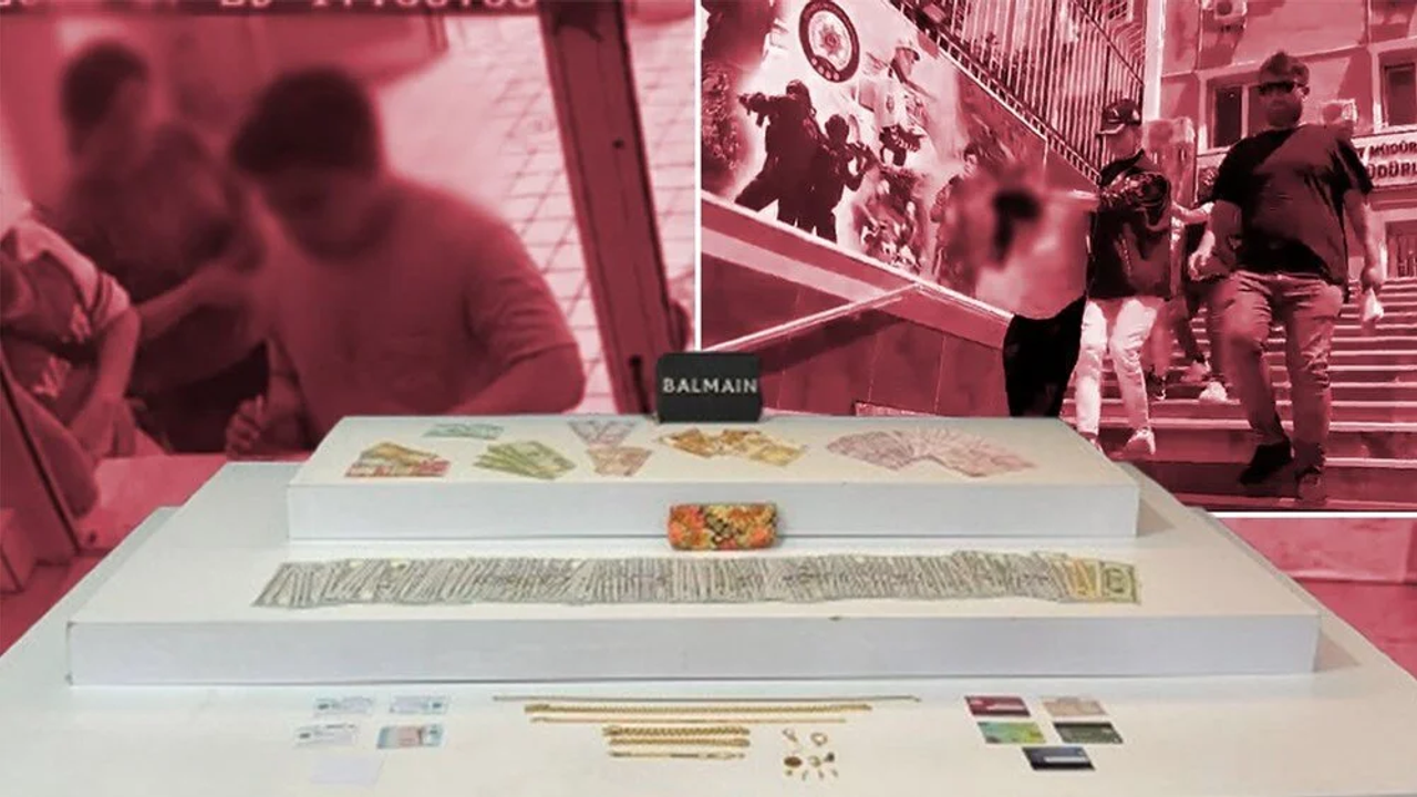 Şüphelilerin çalıntı altın ve paraları döviz bürosunda bozdurdukları anlar güvenlik kamerasınca kaydedildi.